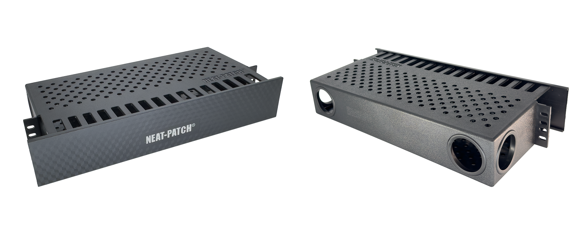 The Neat Patch NP2 is a professional grade 2U cable management bay designed for high density network racks and data center environments. This 2U horizontal cable manager is engineered specifically for 19 inch equipment racks and supports up to 48 ports using optimized 2 foot CAT6 patch cables.